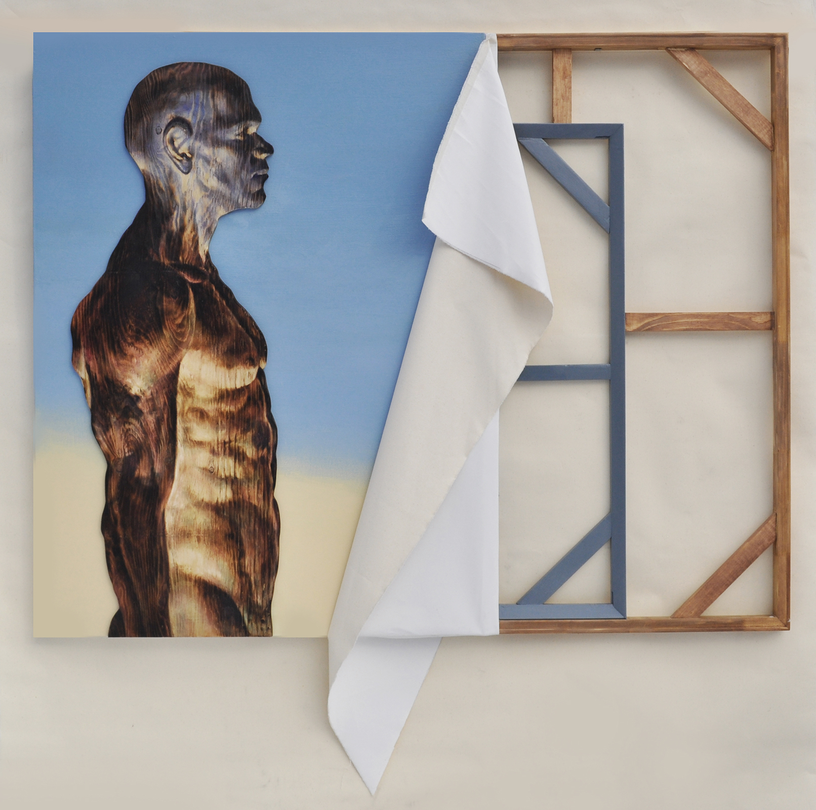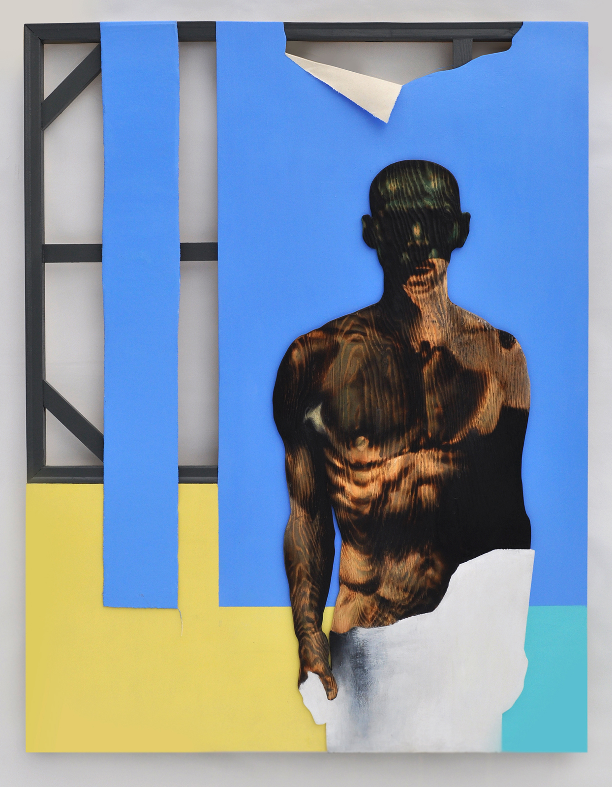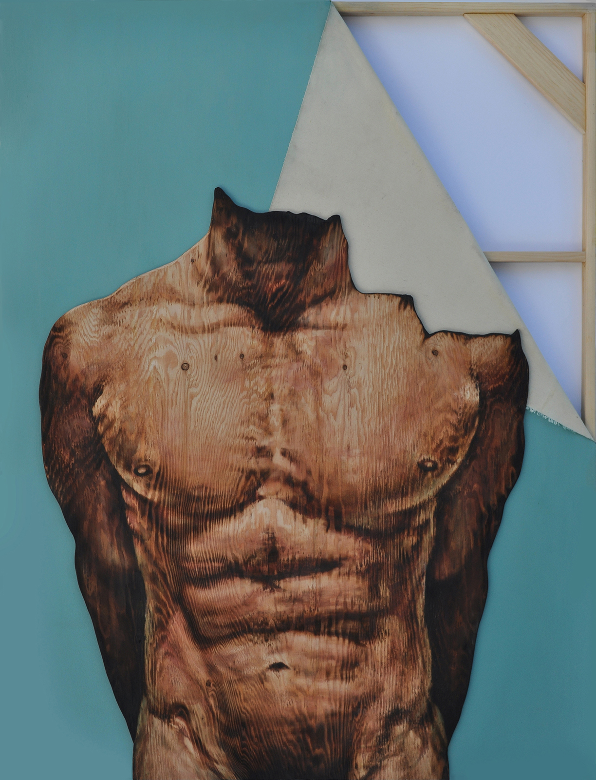 I investigate the tension between the image and its construction, where the body, the surface, and the structure of painting exist in a constant state of negotiation. Across my work, the human figure appears as both presence and trace, formed through processes of burning, imprinting, and erosion. I work with burnt wood, oil and acrylic paint, digital prints, and drawing, often integrating new media. The act of burning is central to my process, functioning as both material transformation and metaphor. The body is not depicted as fixed or complete; instead, it carries the marks of time, memory, and experience, becoming a site where identity is continuously inscribed, erased, and reformed.