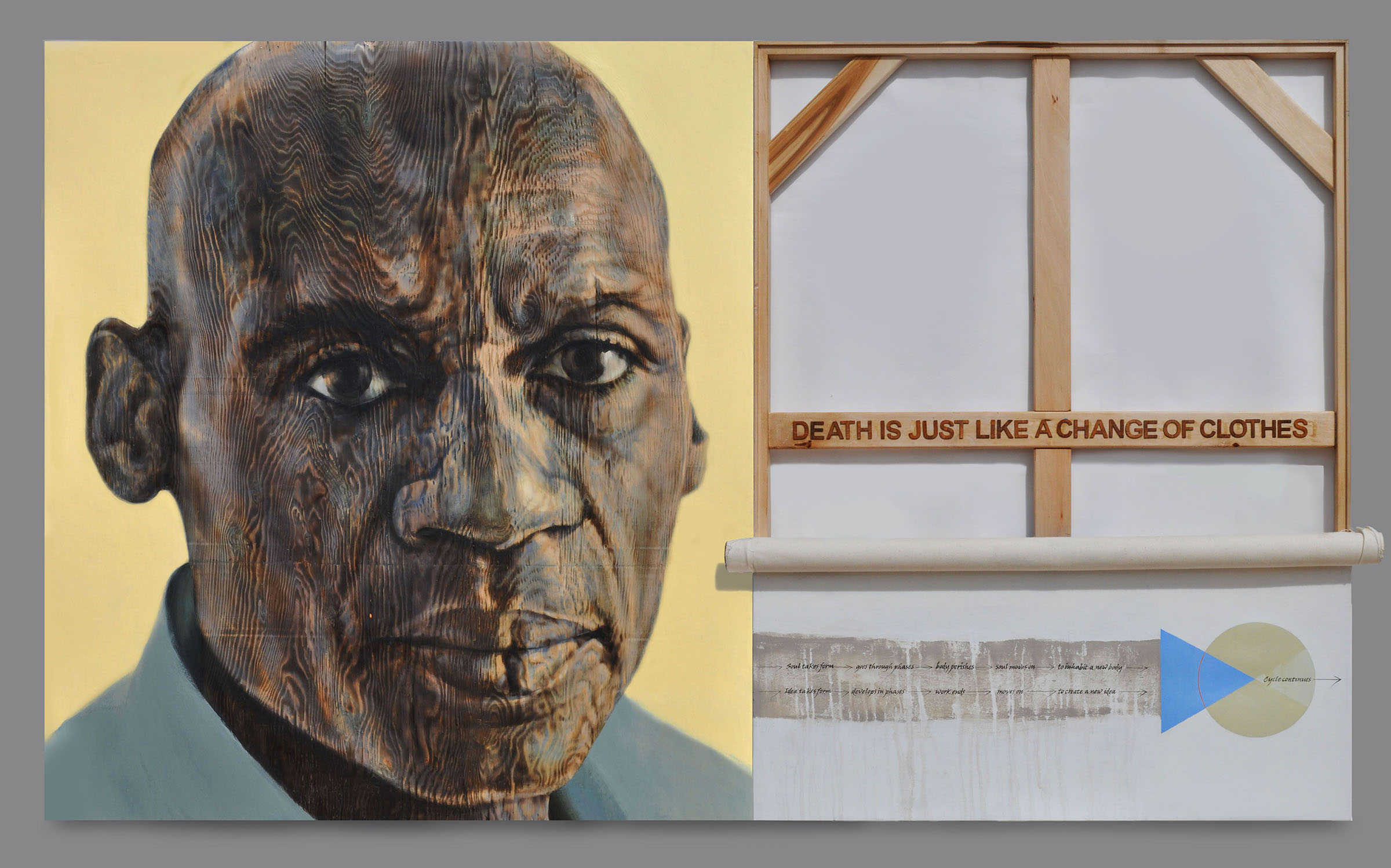 This series explores identity as a cyclical process of creation, destruction, and renewal. Influenced by Hindu funeral rituals, where the body is reduced to ash, releasing the Jiv-Atma, the subtle self, to take on a new form, my artistic process mirrors this transformation. An idea takes shape, evolves through material engagement, and gives rise to new forms and meanings. Each work becomes part of an evolving continuum rather than a fixed conclusion.